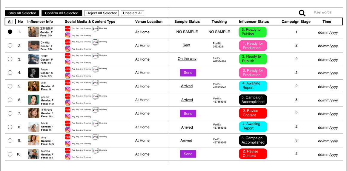 Influencers book venues with samples already waiting for them (brand allocate the samples directly to the locations) to smoothen out the process and ensure more diverse, innovative content.