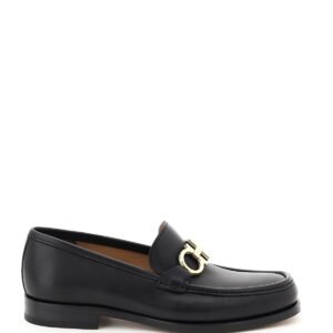 FERRAGAMO loafers in brushed calfskin enriched by reversible Gancini saddle in gold-tone and palladium-finish metal with engraved logo. Leather lining, leather sole with rubber inlay. Width: EEE.